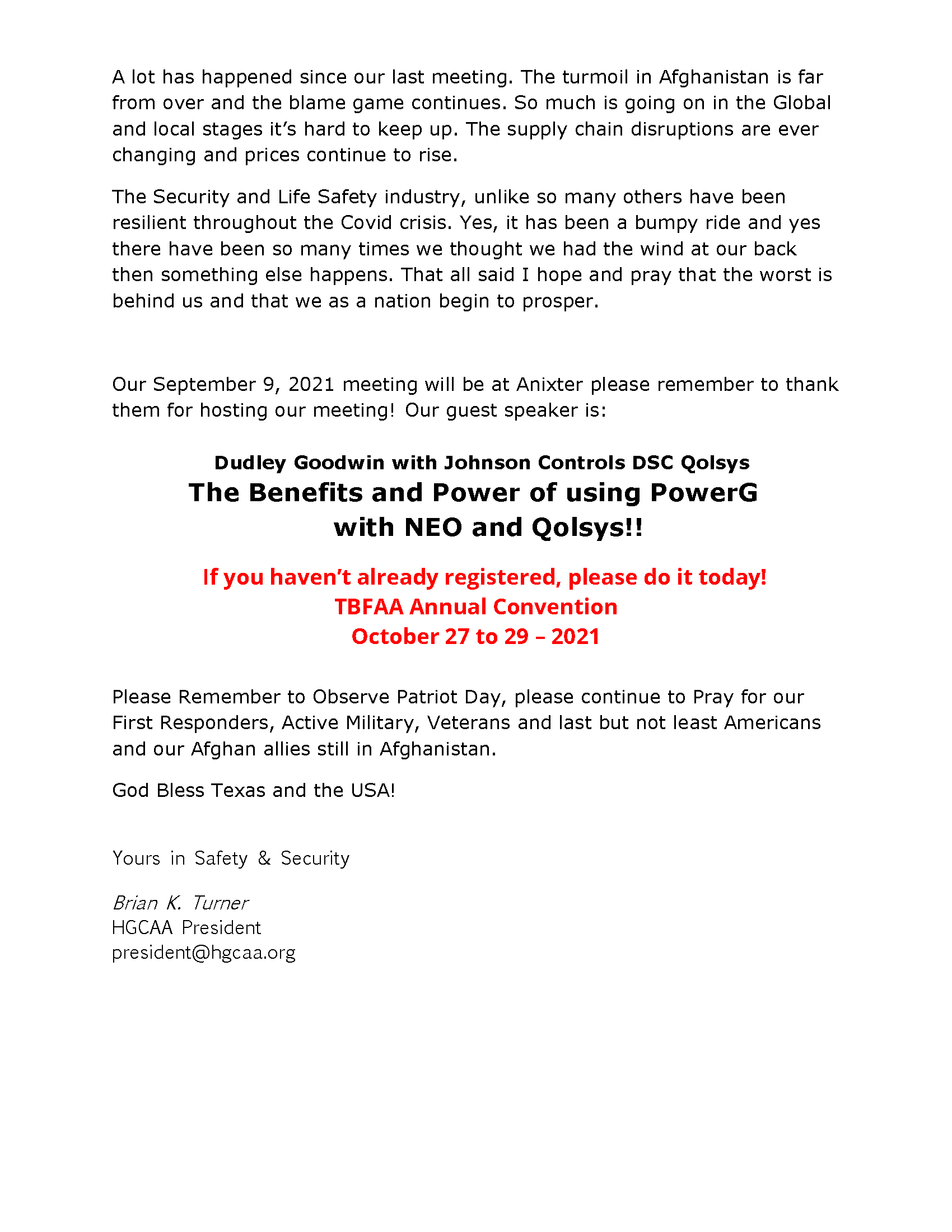 | Jennifer Strauch 713-376-9679 Secretary@HGCAA.org |